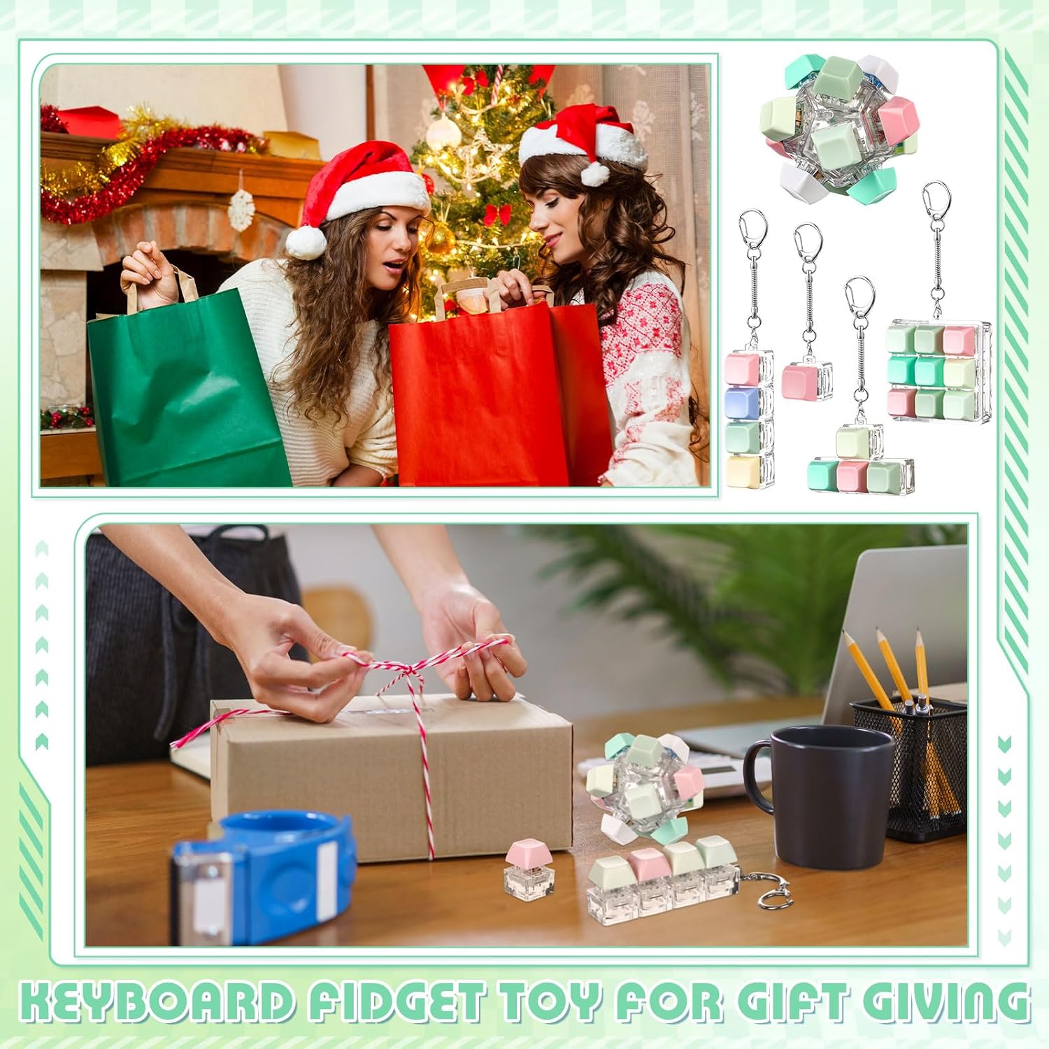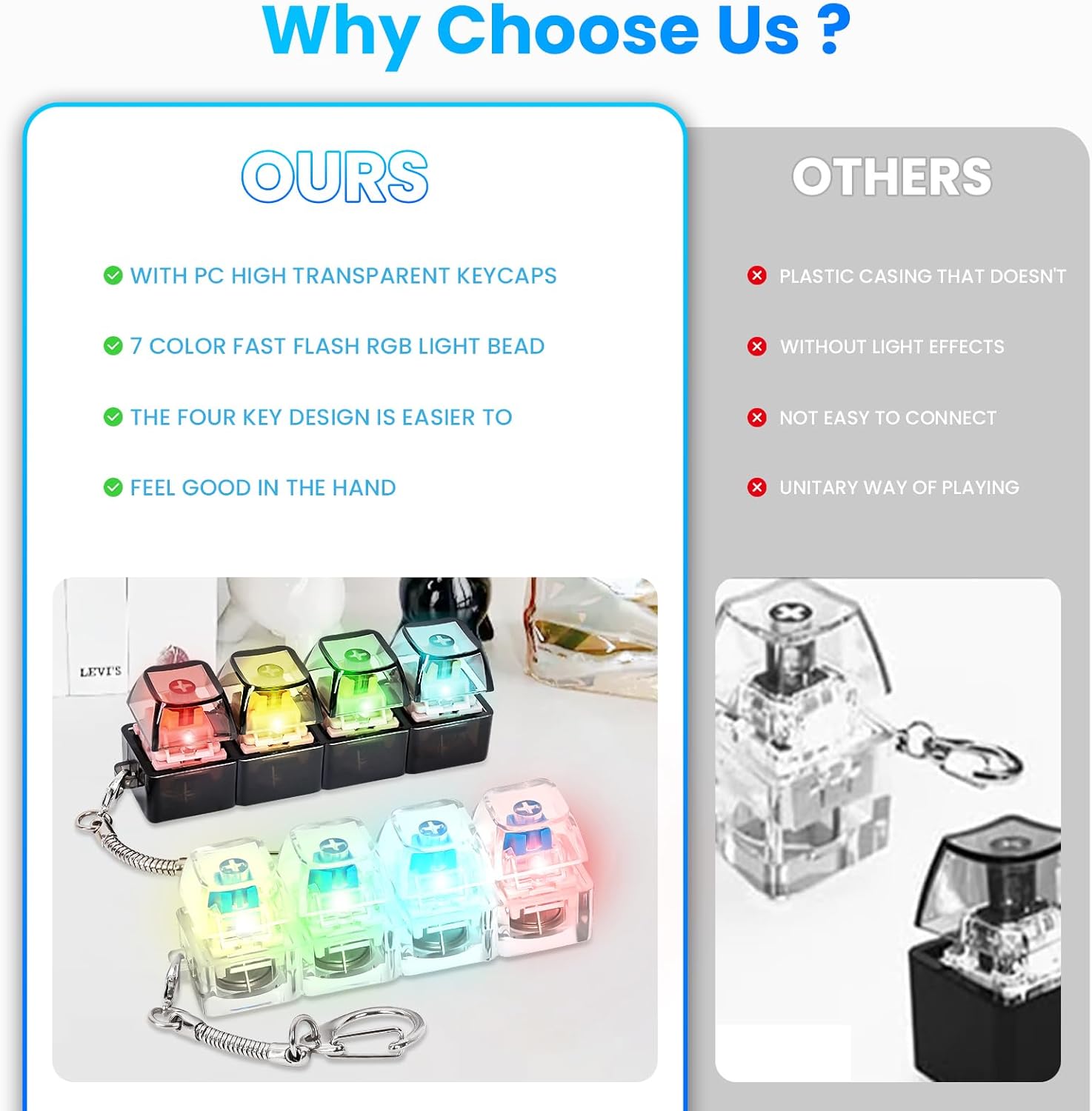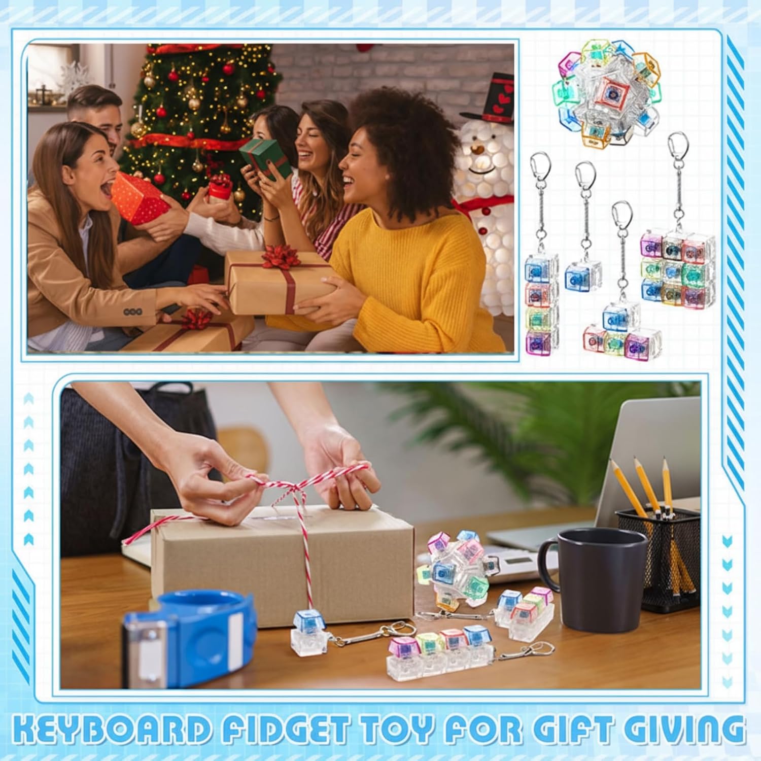 Keyboard Fidget Toy, Fidget Keychain Keyboard with LED Lights, Stress Relief Clicker Fidget Keyboard, Decompression Squeeze Toy for Library Office Home