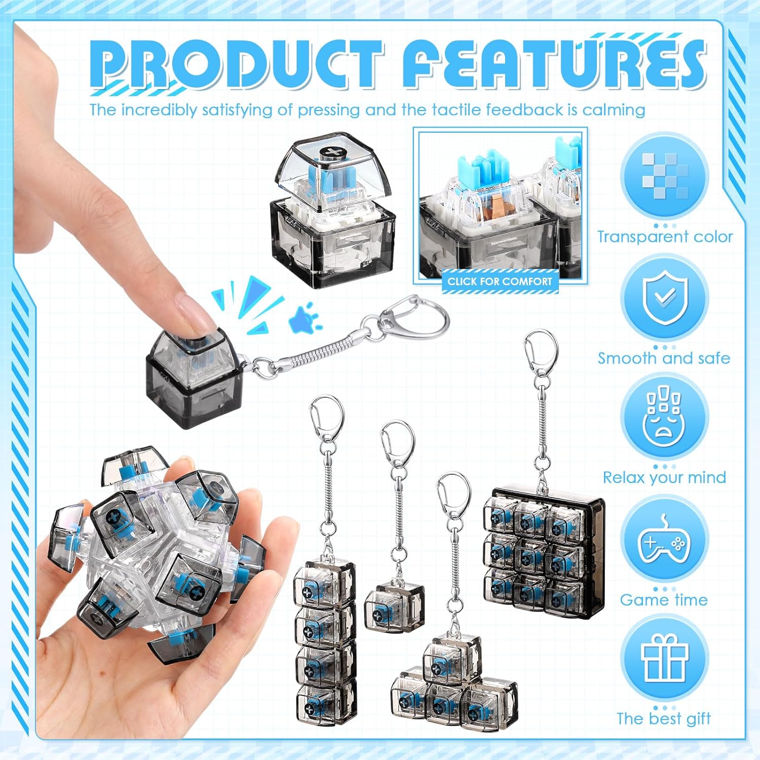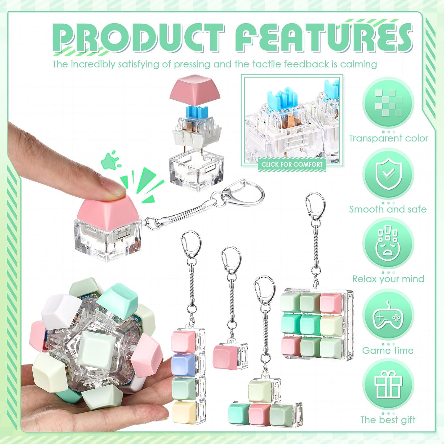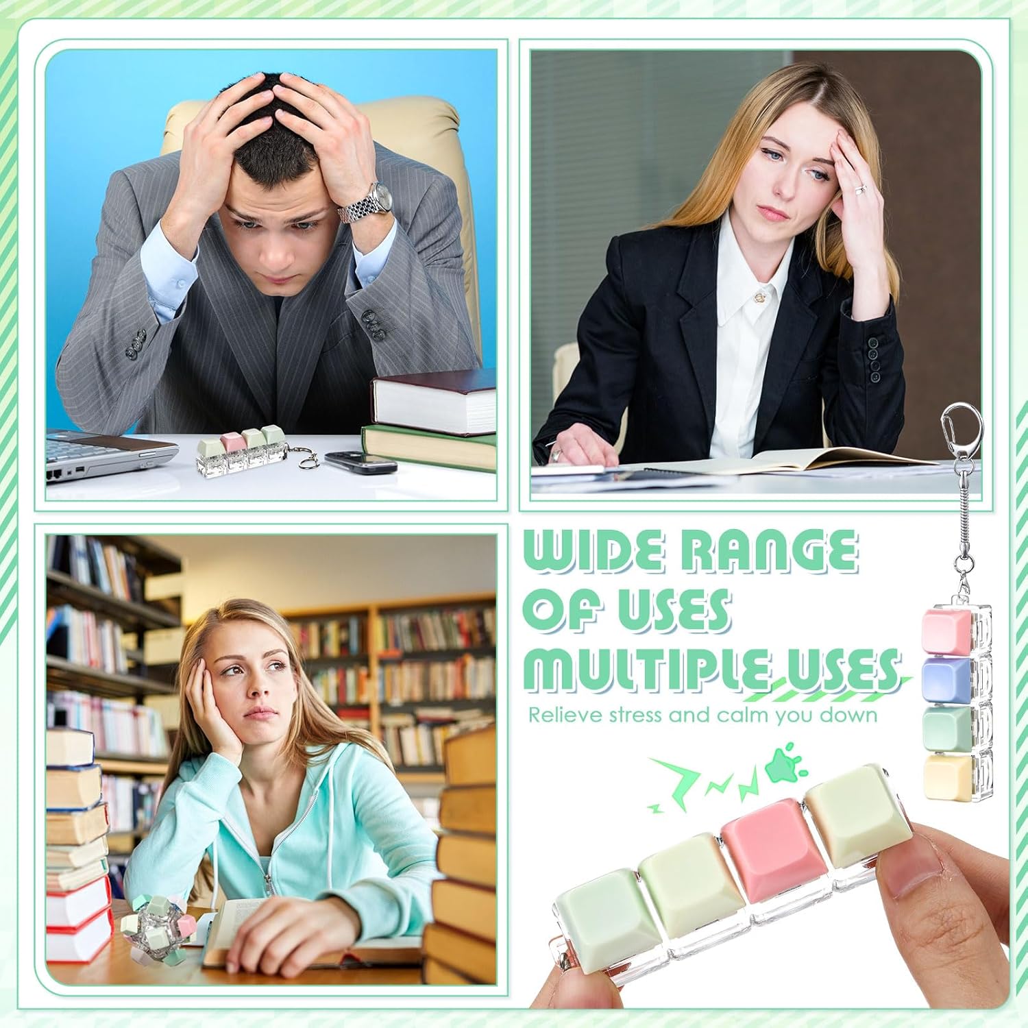 Keyboard Fidget Toy, Fidget Keychain Keyboard with LED Lights, Stress Relief Clicker Fidget Keyboard, Decompression Squeeze Toy for Library Office Home